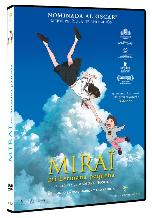 Una joya del anime del aclamado Mamoru Hosoda (“El niño y la bestia”) nominada al Oscar® y al Globo de Oro a la Mejor Película de Animación. Presentada en la Quincena de Realizadores del Festival de Cannes, convirtiéndose en la primera película de animación con première mundial en una sección a competición del certamen francés. Tras su paso por la sección Perlas del Festival de San Sebastián, la película acumula varios premios nacionales: Mejor Película de la Sección Anima’t del Festival de Sitges y Mejor Guion y Premio del Público en Nocturna Madrid. Un cuento repleto de valores y ternura que llega al corazón.Sinopsis:El pequeño Kun, de cuatro años, deja de ser el centro de atención de sus padres cuando nace su hermana Mirai. Frustrado y algo molesto, empieza a experimentar situaciones en casa que nunca había vivido. Pero las cosas cambian de forma mágica cuando la versión adolescente de su hermana viaja en el tiempo desde el futuro para vivir junto a Kun una aventura extraordinaria más allá de lo imaginable. Extras: Teaser / Tráilers / Entrevista a Mamoru Hosoda / Cómo se hizo / Ficha técnica