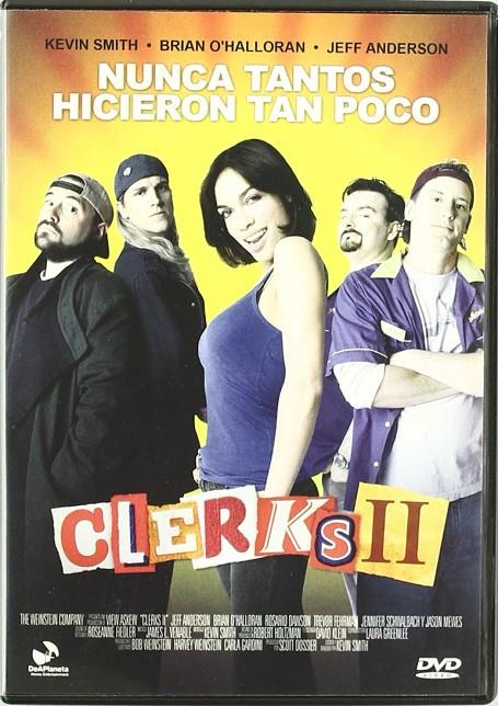 Nunca antes tantos hicieron tan poco y con tanta gracia. En Clerks II, Dante Hicks y Randal Graves, dependientes de una tienda de barrio de Nueva Jersey y mejores amigos, se ven forzados a buscarse un nuevo empleo en el universo de la comida rápida, siempre acompañados de sus actitudes desafiantes, sus escandalosas vulgaridades y su desenfrenada pasión por tocarles las narices a los clientes.IDIOMAS: castellano, inglés SUBTÍTULOS: castellano FORMATO DE PANTALLA: 1.85:1