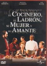El Cocinero sirve obras maestras de la gastronomía en un hermoso restaurante. El ladrón celebra su tiránica corte en el restaurante, aterrorizando a todos las que le rodean, Su esposa abriga una pasión peligrosa e ilícita. Su amante tiene el romance más peligroso de su vida. La notoria película de Peter Greenaway es una tragedia actual de un vengador, salpicada de comedia, e interpretada por Michael Gambon, Helen Miren y Tim Roth