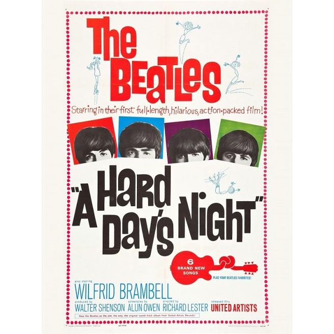 Réplica del póster original inglés de A HARD DAY'S NIGHT dirigida por RICHARD LESTER protagonizada por THE BEATLES en 1964.Medidas aproximadas: 30 cm por 40 cm