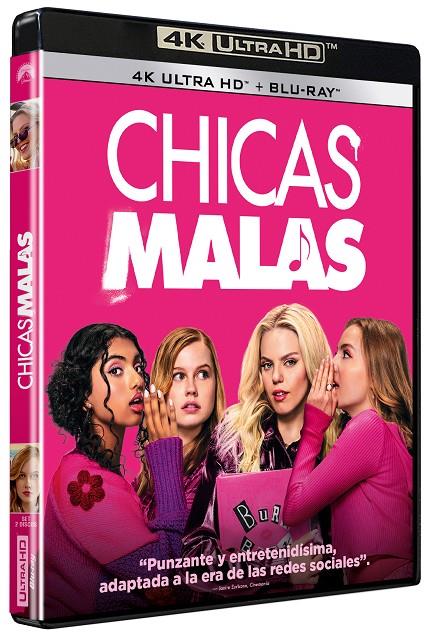 La nueva estudiante Cady Heron es bienvenida a la cima de la cadena social por el elitista grupo de chicas populares llamado “Las Plásticas”, gobernado por la intrigante abeja reina Regina George y sus secuaces Gretchen y Karen. Sin embargo, cuando Cady comete el grave error de enamorarse del exnovio de Regina, Aaron Samuels, se encuentra en el punto de mira de ésta. Con la ayuda de sus amigos marginados Janis y Damian, Cady se propone acabar con la depredadora del grupo y aprender a ser fiel a sí misma en la jungla más despiadada de todas: el institutos. EXTRAS •Una nueva era de Chicas Malas • Canción y baile • Las nuevas Plastics • Escena extendida • Tomas falsas • “Not my fault” Video musical con Reneé Rapp y Megan Thee Stallion • Sing-Along con las Chicas Malas en una selección de canciones