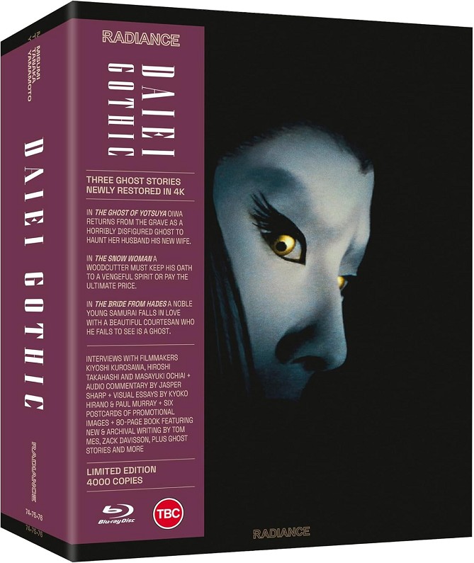Una colección de tres de las historias de fantasmas más famosas de Japón que han perseguido a la gente durante siglos. Kenji Misumi (Lobo Solitario y Cachorro) dirige The Ghost of Yotsuya, en la que una mujer regresa de la tumba como un fantasma horriblemente desfigurado para atormentar a su esposo y su nueva novia. En The Snow Woman, dirigida por Tokuzo Tanaka (Zatoichi), un leñador debe cumplir su juramento a un espíritu femenino vengativo o pagar el precio más alto. La novia de Hades de Satsuo Yamamoto (Shinobi) ve a un apuesto samurái tan encantado por la belleza de una cortesana que no se da cuenta de que es un fantasma. Estas tres versiones cinematográficas del estudio Daiei forman un pináculo del terror japonés atmosférico. Sus elegantes efectos visuales y sus sombras ominosas rivalizan con lo mejor de Terence Fisher o Mario Bava, mientras que sus icónicos fantasmas femeninos influirán enormemente en el cine de género asiático, desde espectáculos de fantasía de Hong Kong como A Chinese Ghost Story hasta J-horror.CAJA DE EDICIÓN LIMITADA CARACTERÍSTICAS ESPECIALES:-Nuevas restauraciones 4K de cada película.-Audio PCM mono sin comprimir para cada película.-Subtítulos opcionales en inglés para todas las películas.-Caja de nuevo diseño y folleto ilustrado por Time Tomorrow.-Seis postales con imágenes de archivo originales de las películas.-Libro de edición limitada de 80 páginas con nuevos escritos de los autores Tom Mes, Zack Davisson y Paul Murray, reseñas de archivo recién traducidas e historias de fantasmas de Lafcadio Hearn.-Edición limitada de 4.000 ejemplares presentados en una caja rígida con estuches Scanavo de altura completa para cada película y tira OBI extraíble dejando el embalaje libre de certificados y marcas.EL FANTASMA DE YOTSUYA:-Nueva entrevista con el cineasta Kiyoshi Kurosawa.-Un ensayo visual sobre la historia y las adaptaciones de la clásica historia de Ghost of Yotsuya de la autora Kyoko Hirano.-Trailer.-Funda reversible con ilustraciones
