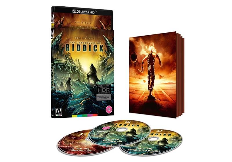 CONTENIDO DE LA EDICIÓN LIMITADA 4K ULTRA HD:-Nuevas restauraciones en 4K de Arrow Films de los cortes teatrales y del director de la película, aprobados por David Twohy.-Audio envolvente DTS-HD MA 5.1 original en ambos cortes, además de Dolby Atmos remezclado para el corte teatral.-Subtítulos opcionales en inglés para sordos e hipoacúsicos en ambos cortes.-Funda reversible con obras de arte recién encargadas por Dan Mumford.-Folleto ilustrado para coleccionistas con nuevos escritos sobre la película de Walter Chaw, notas de producción originales y el "Compendio de Crónicas", una descripción general de los personajes y planetas que aparecen en la película.DISCO UNO:-Presentación en Blu-ray 4K (2160p) UHD en Dolby Vision (compatible con HDR10) del corte teatral del negativo original.-Ambition on Another Scale: Chronicling a Blockbuster Sequel, un nuevo largometraje documental sobre la película, que incluye entrevistas con el guionista y director David Twohy, los actores Keith David y Linus Roache, el artista de guiones gráficos Brian Murray, el artista conceptual Matt Codd, el artista de efectos en miniatura Ian Hunter y el artista de mate digital Dylan Cole.-Realizando a Riddick, una nueva entrevista con Twohy sobre la creación del personaje.-Back to Black, una nueva entrevista con Murray sobre su continuo trabajo dentro de la saga Riddick.-Crónicas de una celebridad del cine de culto, una nueva entrevista con David sobre el papel del imán.-Tráilers.DISCO DOS:-Presentación en Blu-ray 4K (2160p) UHD en Dolby Vision (compatible con HDR10) del Director's Cut.-Comentario de audio de archivo por David Twohy y Vin Diesel.-Comentarios de audio de archivo de Twohy y los coprotagonistas Karl Urban y Alexa Davelos.-Introducción al archivo por Twohy.-Creación de New Mecca, un featurette de archivo centrado en el mundo y los personajes de Helion Prime.-Riddick Rises, un reportaje de archivo centrado en el planeta prisión de los crematorios.-Keep What You Kill, un reportaje de a