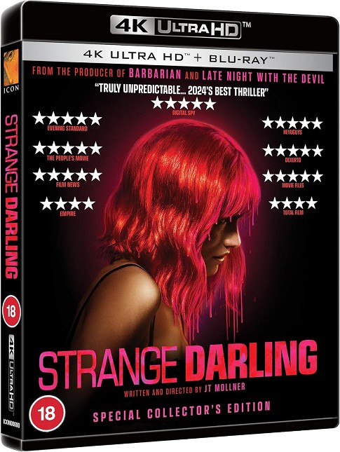 Un viaje emocionante inteligente e implacable que desafía las expectativas de la audiencia a cada paso, en Strange Darling, nada es lo que parece cuando una aventura retorcida de una noche se convierte en la viciosa ola de asesinatos de un asesino en serie. Un nuevo y fascinante thriller de terror de los productores de 'Late Night with the Devil' y 'Barbarian', esta nueva versión impecablemente construida del género del gato y el ratón está protagonizada por Willa Fitzgerald (Reacher, serie Scream), Kyle Gallner (Smile, Scream 2022), Ed Begley Jr. (Better Call Saul, A Mighty Wind) y Barbara Hershey (Black Swan, Insidious, The Last Temptation of Christ).CONTENIDO ESPECIAL EDICIÓN COLECCIONISTA:-Embalaje de juntas tóricas de primera calidad.-Entrevistas detrás de cámaras del elenco y el equipo.-Spots de TV y trailers.-¡Además de cuatro tarjetas artísticas personalizadas y un póster A3!.