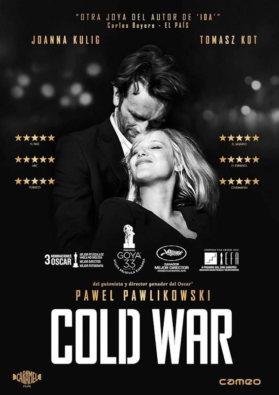 "Cold War" es una apasionada historia de amor entre un hombre y una mujer que se encuentran en las ruinas de la Polonia de posguerra. A pesar de un pasado y una personalidad diferentes, el destino los ha condenado a estar juntos. La película se ambienta en el contexto de la Guerra Fría de la década de 1950 en Polonia, Berlín, Yugoslavia y París. La pareja, a la que separa la política, las debilidades de sus personalidades divergentes y los desafortunados giros del destino, vivirá una historia de amor imposible en tiempos imposible.EXTRAS: Tráiler, en el festival de San Sebastián: llegada, entrevista al director y presentación de la película, Pawel Pawlikowski en la Script, en los EFA Premios del Cine Europeo