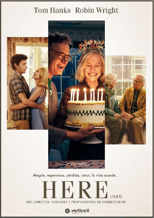 Ambientada en una única habitación, HERE (AQUÍ) sigue a las numerosas generaciones de habitantes que formaron en esa habitación su hogar. Una original historia de amor, pérdida, risas y vida, que nos hará viajar desde un pasado muy remoto hasta un futuro próximo. Este emocionante viaje a lo largo de cientos de miles de años, transcurrirá, de principio a fin, en un solo lugar: AQUÍ.