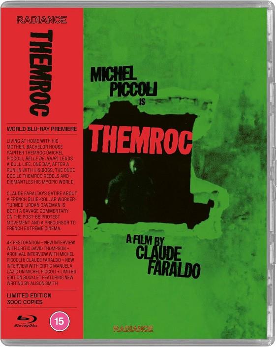 Viviendo en casa con su madre, el pintor soltero Themroc (Michel Piccoli, Belle de Jour) lleva una vida aburrida. Un día, después de un encuentro inmerecido con su jefe, el usualmente dócil Themroc se rebela y desmantela su mundo miope. Realizada con un presupuesto reducido y sin diálogos inteligibles, la sátira de culto de Claude Faraldo que rompe tabúes sobre un obrero francés convertido en cavernícola urbano destripa anárquicamente las políticas laborales y de género de mediados de siglo. Nunca lanzado en video casero en el Reino Unido, Themroc puede ser familiar para el público británico de las infames proyecciones del Triángulo Rojo de Channel 4, destinadas solo para adultos; ahora se puede volver a ver esta sátira salvaje, recién presentada en Blu-ray a partir de una restauración en 4K.CARACTERÍSTICAS ESPECIALES DE BLU-RAY DE EDICIÓN LIMITADA:-Restauración 4K a partir del negativo original por StudioCanal.-Audio PCM mono sin comprimir.-Entrevista con el crítico y cineasta David Thompson (2025).-Entrevista televisiva de archivo con el actor Michel Piccoli y el director Claude Faraldo (1973).-Entrevista a Manuela Lazic sobre Michel Piccoli (2025).-Galería.-Trailer.-Subtítulos opcionales en inglés para personas sordas e hipoacúsicas.-Funda reversible con ilustraciones originales y recién encargadas por Sam Smith.-Libreto de edición limitada con nuevos escritos de Alison Smith, autora de El cine francés en la década de 1970 Los ecos de mayo.-Edición limitada de 3000 ejemplares, presentada en embalaje Scanavo de altura completa con tira OBI extraíble que deja el embalaje libre de certificados y marcas.