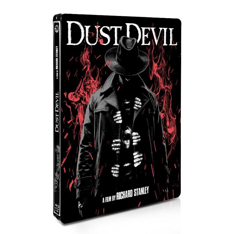 Un enigmático ser (Robert John Burke), un espíritu al que los lugareños llaman "El Demonio del Desierto", viene de las arenas en busca de víctimas. Acecha a los solitarios y no amados, aquellos que ya lo han perdido todo menos a la vida misma. Wendy (Chelsea Field) ha roto con su esposo y vaga sin rumbo en su auto. Recoge a un desconocido y comienzan a ocurrir cosas extrañas. Mientras tanto, un oficial de policía local (Zakes Mokae) rastrea a la diabólica entidad. Ayudado por las adivinaciones de un chamán, se embarca en un intento por detener a la bestia antes de que complete su macabra tarea.Película de fantasía oscura, sangrienta y mística con una atmósfera opresiva e inquietante, muy en el espíritu del trabajo de Richard Stanley para la banda de rock ocultista “Fields of the Nephilim”. Auténtica obra de culto, rodada en Namibia y con una fotografía onírica (muy al estilo de la genial “El Topo” de Alejandro Jodorowsky) es una extraña película terrorífica y mágica, nuevamente con Simon Boswell (“Demons 2”, “Hardware”) al cargo de una banda sonora perversa y, al mismo tiempo, poética. Por primera vez presentada en España con sus dos montajes y extras exclusivos en esta edición metálica limitada, como merecido homenaje a esta película y a su autor: el gran Richard Stanley.Contiene: Dust Devil Uncut (108 minutos), Dust Devil (87 minutos) y entrevista exclusiva a Richard Stanley (55 min)