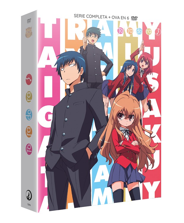 Ryuji Takasu es un estudiante de segundo año de bachillerato cuya mirada intimidante hace que todos lo tomen por un delincuente, aunque en realidad es un buen chico. Al comenzar el nuevo curso, conoce a Taiga Aisaka, una chica de aspecto adorable y tamaño diminuto, pero con un temperamento feroz e incontrolable. Cuando pierde los estribos, nadie puede detenerla, lo que le ha valido el apodo de "Tigresa de Bolsillo". Por un giro del destino, Ryuji descubre que Taiga está enamorada de su mejor amigo, Kitamura, y Taiga descubre que Ryuji está enamorado de su mejor amiga, Minori. Presionado por Taiga, Ryuji accede a ayudarla a conquistar a su amor no correspondido. A partir de ese día, la vida de Ryuji se verá constantemente sacudida por la presencia de Taiga...CAJA CONTENEDORA: Caja protectora rígida a tamaño A4 para guardar toda tu edición. Con acabado mate y reserva UVi.2. LIBRO: Exclusivo libro de 96 páginas con información sobre la serie, los personajes, entrevistas...3. MAXICARDS: Increible colección de maxicards a tamaño 27,5x17cm con diseños de los personajes de la serie.4. PÓSTERES: Dos pósteres con los diseños principales a tamaño 68x48cm impresos a una cara.5. SHIKISHI: Un shikishi muy especial con los protagonistas de la serie a tamaño 14x14cm, con acabado mate y reserva UVI.6. STICKERS: Colección de stickers troquelados con diseños de los personajes de la serie y guardados dentro de su sobre protector.7. FUROSHIKI: Una fantástica reproducción del furoshiki que utiliza Taiga para envolver su bento en el episodio especial del OVA!8. BSO: Esta edición también incluye un estuche que contiene el CD con la fantásticaBanda Sonora de la serie.