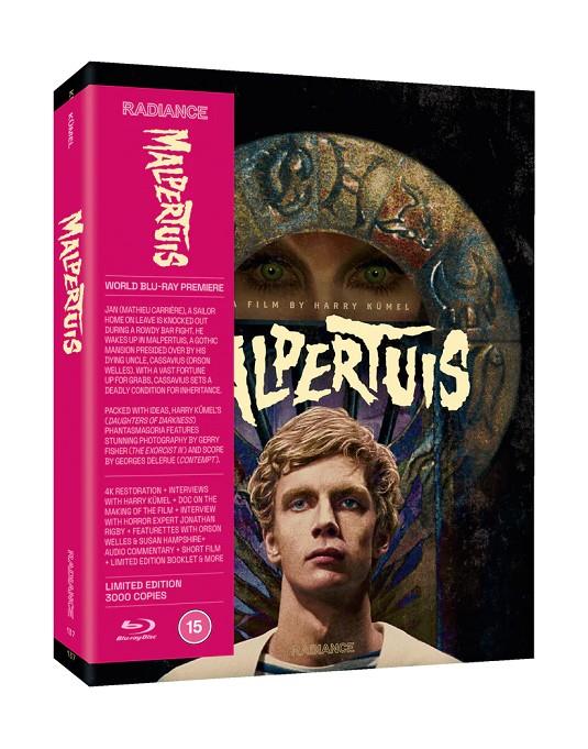 Jan (Mathieu Carrière, Police Python 357), un marinero recién llegado a tierra, no está seguro de regresar a tierra, pero hace el viaje para visitar la casa de su infancia y descubre que ya no está allí. Va al Bar Venus y se reúne con sus amigos, pero un altercado lo deja inconsciente. Despierta en Malpertuis, una mansión gótica presidida por su tío, Cassavius (Orson Welles). Todos los habitantes de Malpertuis esperan la muerte de Cassavius y la oportunidad de heredar su enorme fortuna. Pero Cassavius desea que quien herede se quede allí para siempre. Jan investiga cómo los que se van se encuentran con muertes misteriosas. La fantasmagoría de Harry Kümel (Las hijas de la oscuridad) es una muñeca Matryoshka de ideas fantásticas, realizada con una fotografía impresionante de Gerry Fisher (El exorcista III) y musicalizada por Georges Delerue (El desprecio). Recién restaurado y supervisado por Kümel, se lanza en Blu-ray por primera vez en el mundo.