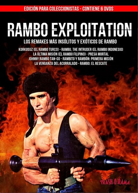 Ahora que Rambo ha regresado a las pantallas, es el momento idóneo para disfrutar de las versiones más insólitas, cafres, dementes, alucinantes, bizarras y caspoides llegadas, principalmente, del continente asiático, casi todas ellas al ritmo de la música original de Jerry Goldsmith.En este pack encontrarás al Rambo turco y su lanzamisiles de pega, el Rambo indonesio y su imitación de Stallone, el políticamente incorrecto made in Filipinas, un Rambo americano absolutamente delirante, otro Rambo filipino con una banda sonora flipante, el Rambo animado y dos bonus track procedentes de Italia y Argentina.KORKUSUZ, EL RAMBO TURCO (Çetin Inanç, 1986) Con Serdar, Osman Betin. (Audio en turco con subtítulos en castellano, 4:3)RAMBU, THE INTRUDER (Jopi Burnama, 1986) Con Peter O'Brian (Audio en inglés con subtítulos en castellano, 16:9)JOHNNY RAMBO TAN-GO (Ricky Santiago, 1984) Con LRedford White. (Audio en castellano, 4:3)PRESA MORTAL (David A.Prior, 1987) Con Ted Prior. (Audio en castellano/inglés con subtítulos en castellano, 4:3)LA ÚLTIMA MISIÓN (Cirio H.Santiago, 1984) Con Richard Young. (Audio en castellano/inglés con subtítulos en castellano, 16:9)RAMBO, EL RESCATE (Michael Hack, 1986) Animación. (Audio en castellano, 4:3)Contenidos adicionales: documentales, trailers, videoclips, escenas eliminadas, material muy bizarro, ficha técnica, carteles, y la películas completas RAMBITO Y RAMBÓN PRIMERA MISIÓN y LA VENGANZA DEL ACORRALADO (4:3/castellano).
