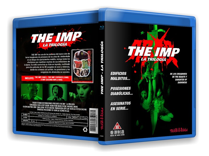 THE IMP (Dennis Yu, 1981) Con Charlie Chin, Kent Cheng (Audio cantonés con subs en castellano. 16:9)THE IMP: EXPOSED (Ivan Lai, 1996) Con Diana Pang, Mark Cheng (Audio cantonés con subs en castellano. 16:9)X IMP: SECOND IMP (Kenneth Lau, 1999) Con Diana Pang, Michael Wong (Audio cantonés con subs en castellano. 16:9)The Imp es una de las películas más influyentes del cine de terror hongkonés, una obra maestra de la nueva ola con un edificio maldito, apariciones, posesiones y todos los efectismos que más nos gustan. La película inició una nueva moda e infinidad de imitaciones y homenajes. En 1996 Ivan Lai dirige un reboot de The Imp protagonizado por la reina del cine de categoría III, Diana Pang, un folk horror con asesinatos en serie y mucho sexo que se vería continuado en una producción mafiosa, de nuevo con Diana Pang, y muchas extrañas muertes en un internado hongkones. Sangre, fantasmas y muertes violentas en una trilogía sorprendente.Contenidos adicionales: Biofilmografías, trailers, fichas, carteles.
